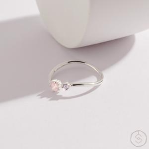 【SPANCONNY】繆思MUSE | 粉水晶 堇青石 S925純銀 | 微光雙鑽線戒