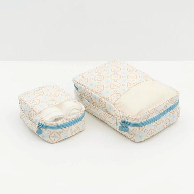 【印花樂】拉鏈梯形收納包/山林朋友/橘藍