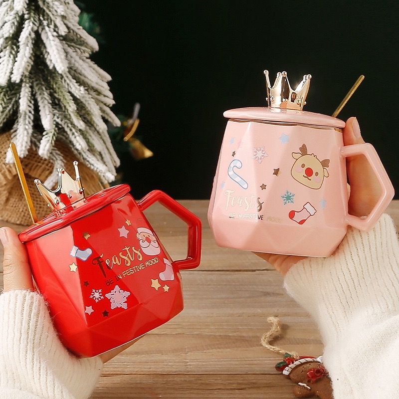 🎁交換禮物首選🎁【CW 可營生活選物】精美禮盒裝 聖誕蝴蝶結立體公仔附湯匙馬克杯 紅|聖誕節/陶瓷/造型杯/交換禮物/蝴蝶結|新年禮物|水瓶座生日快樂|生日禮物|送禮|禮盒