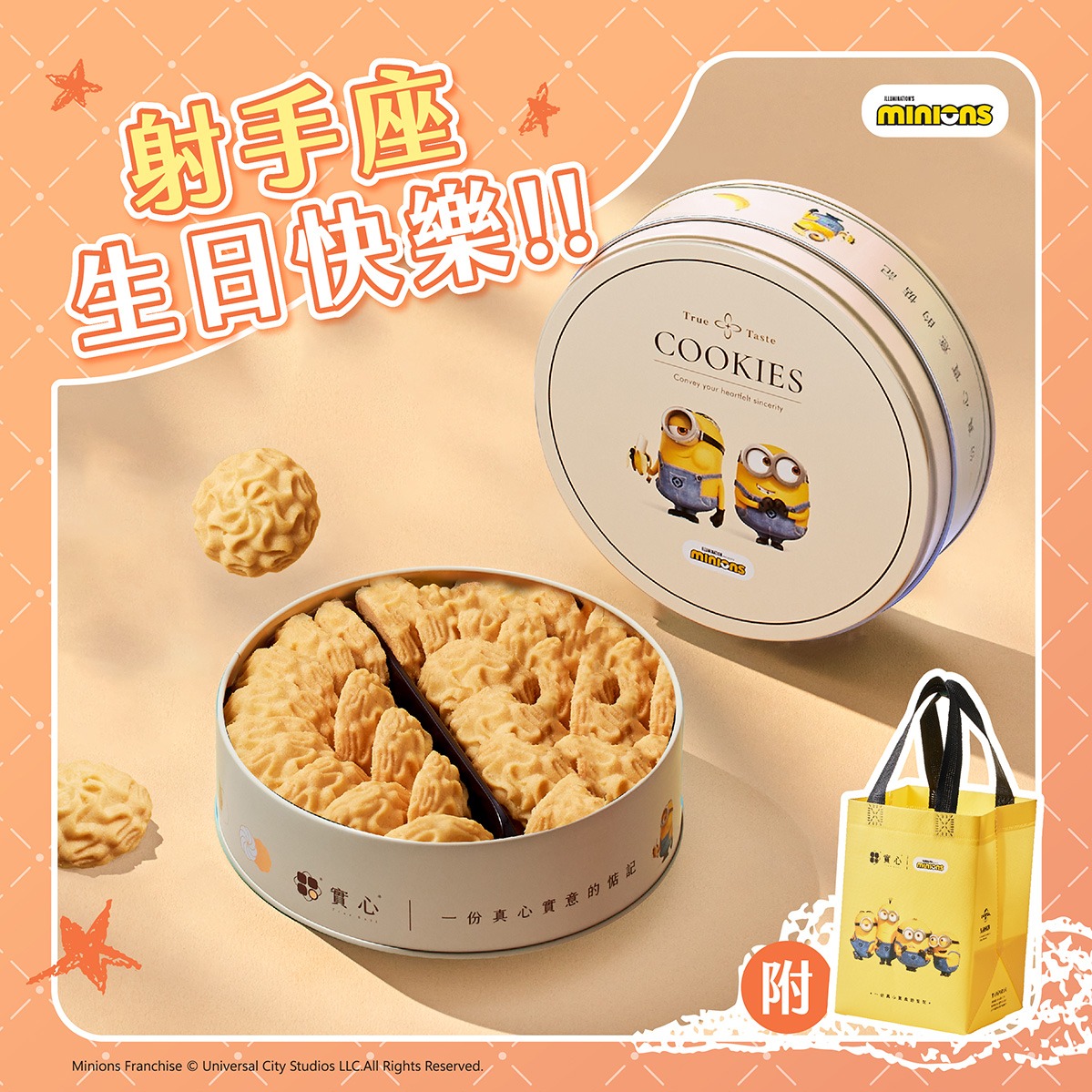 射手座 生日快樂♡快速出貨【實心蛋捲 |小小兵聯名】雙脆粹蛋捲提袋組