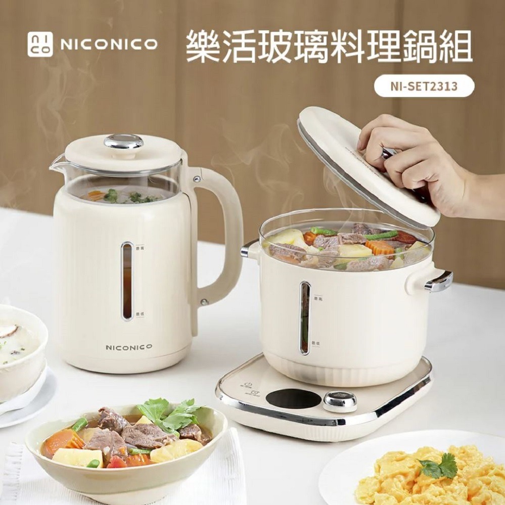 【NICONICO】贈隔熱玻璃壼杯組 1.5L多功能陶瓷鈦美食鍋 料理鍋 電火鍋 獨享鍋 快煮鍋 泡麵鍋 蒸鍋 NI-GP2503