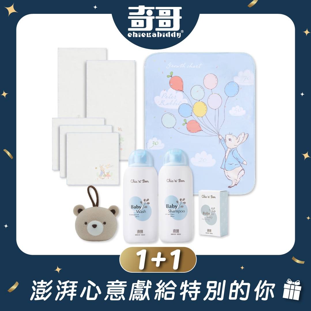 【奇哥】Chic a Bon 洗沐潔膚禮盒(香皂4入、洗髮精1入、沐浴露1入)|寶寶新生兒禮、滿月禮、彌月禮、馬年吉祥、新年快樂