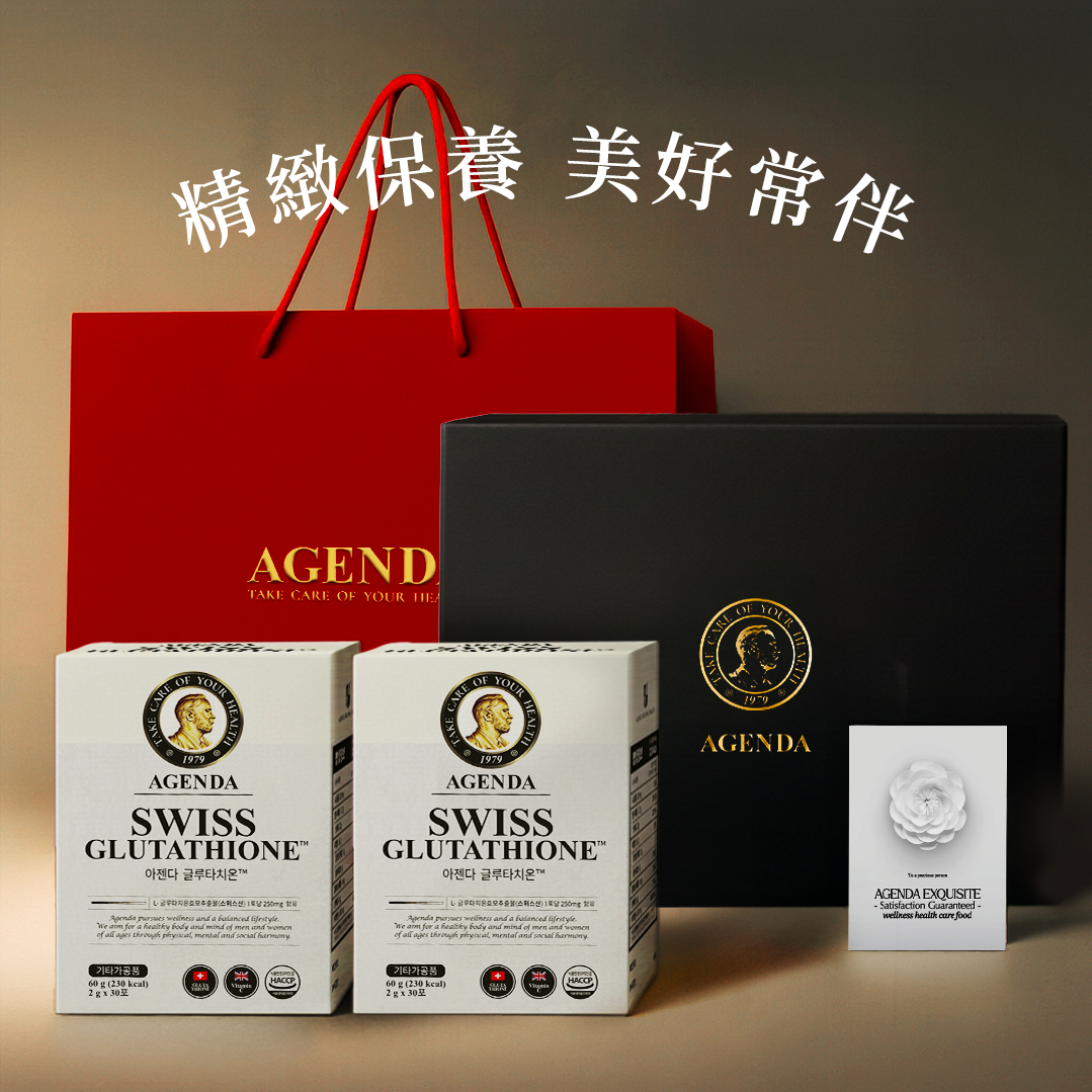 快速出貨【AGENDA】送禮首選!|光燦煥白穀胱甘肽30入+女性綜合維他命30入+光暈黑色禮盒+花漾祝福小卡+紅色提袋(情人節禮物/交換禮物)