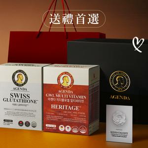 快速出貨【AGENDA】長輩送禮❣️|光燦煥白穀胱甘肽30入+女性綜合維他命30入+光暈黑色禮盒+花漾祝福小卡+紅色提袋(送禮首選/長輩禮物)