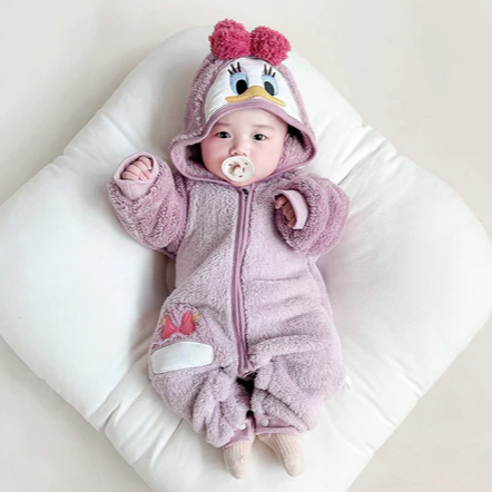 【寶寶市集】寶寶市集 秋冬必備防寒兒童超厚棉服 兒童保暖法蘭絨連帽連身衣 - 字母米奇尺寸任選
