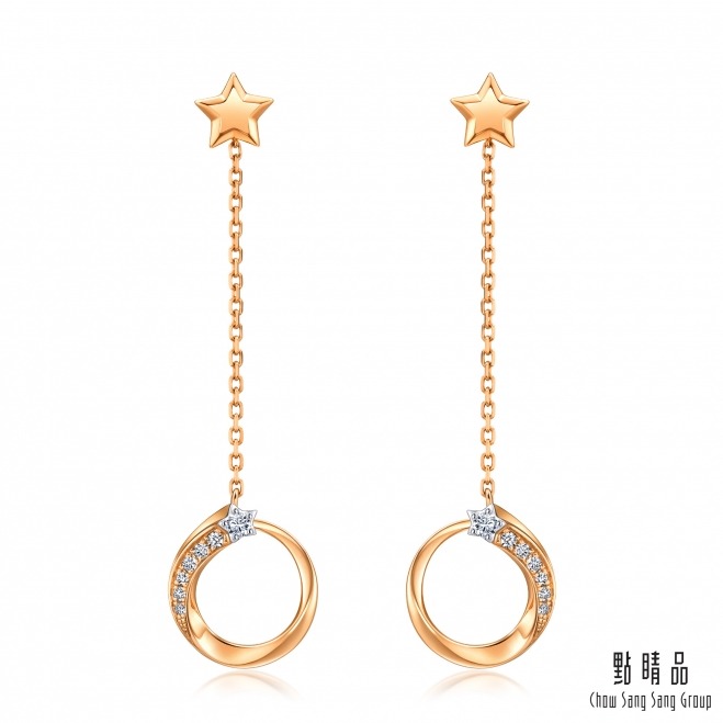 【點睛品】Daily Luxe 排鑽小光圈 18K玫瑰金鑽石耳環(一對)