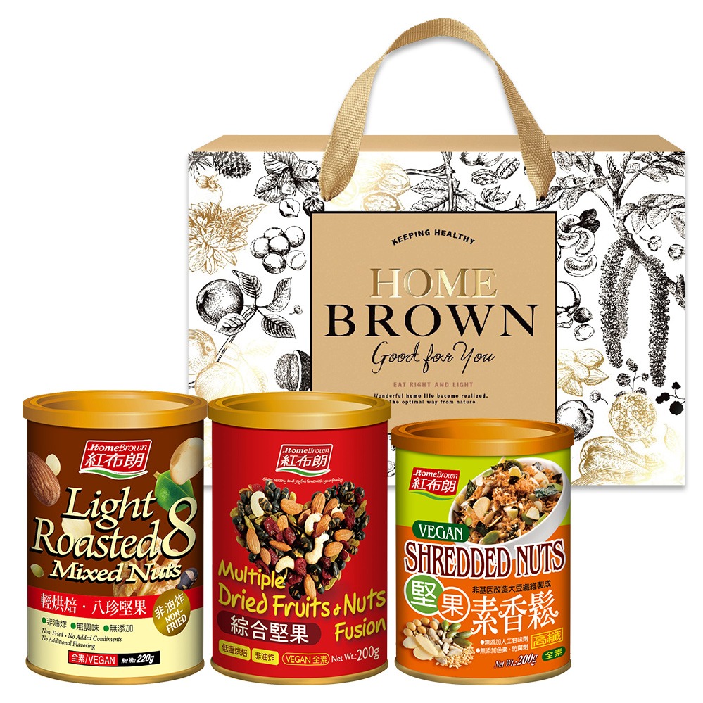 【紅布朗】珍藏堅果禮盒(鹽烤3色堅果+輕烘焙八珍堅果+綜合堅果)