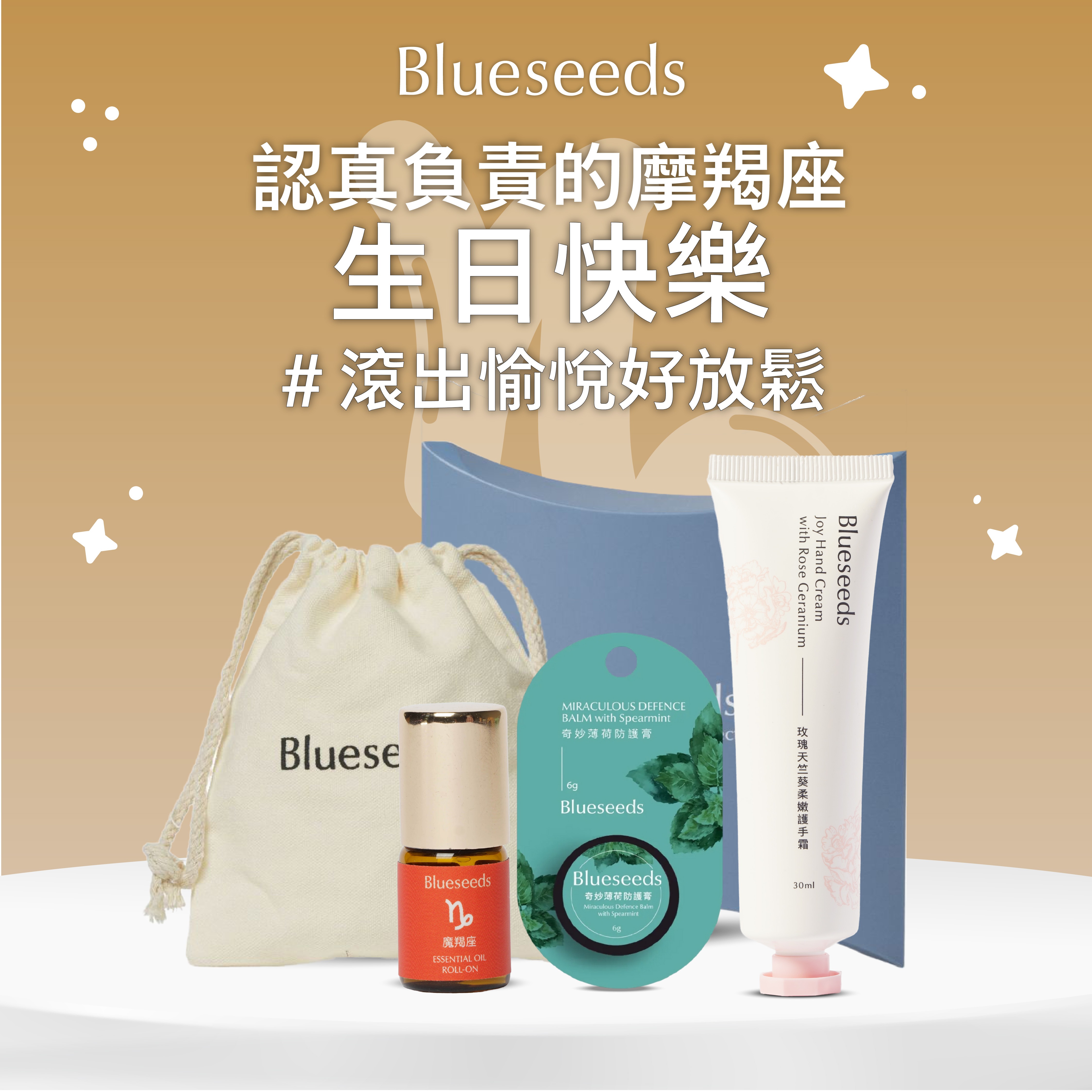 【Blueseeds】獨立自主的水瓶座 生日快樂 l 最了解水瓶壽星的禮物 l 橙花精油護手霜30ml+迷迭香滾珠精油2ml+水瓶座滾珠精油2ml l 芙彤園