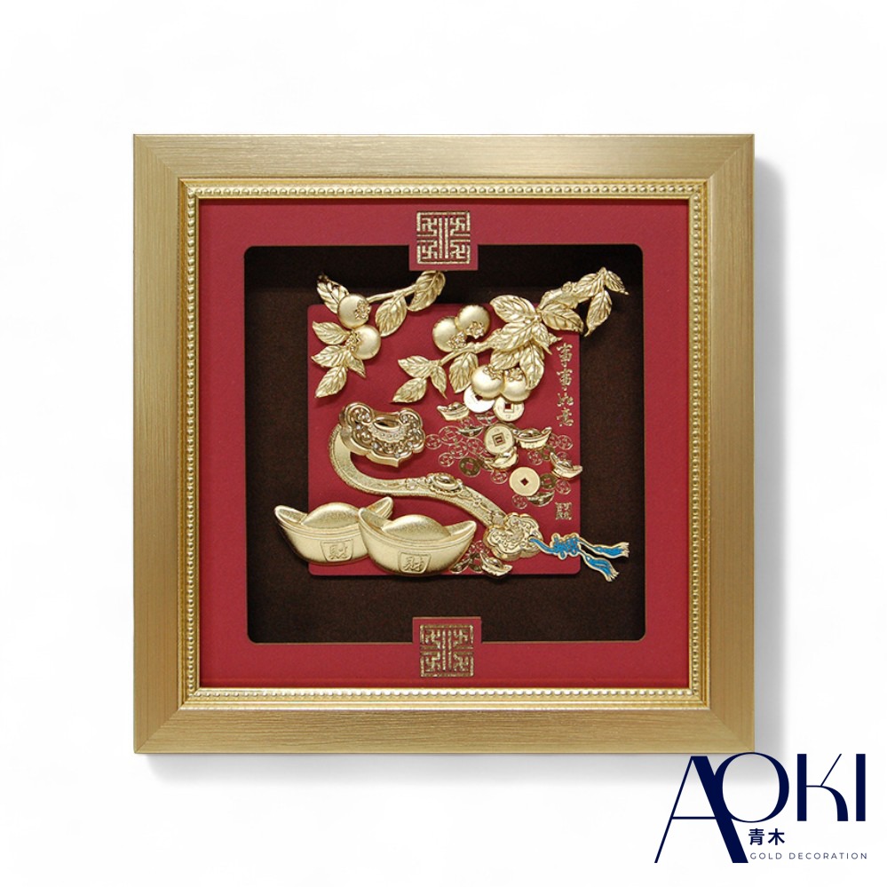 【AOKI青木】黃金立體金箔畫 鴻福 松齡鶴壽 純金9999 ( 升官 招財 開業 新年送禮)