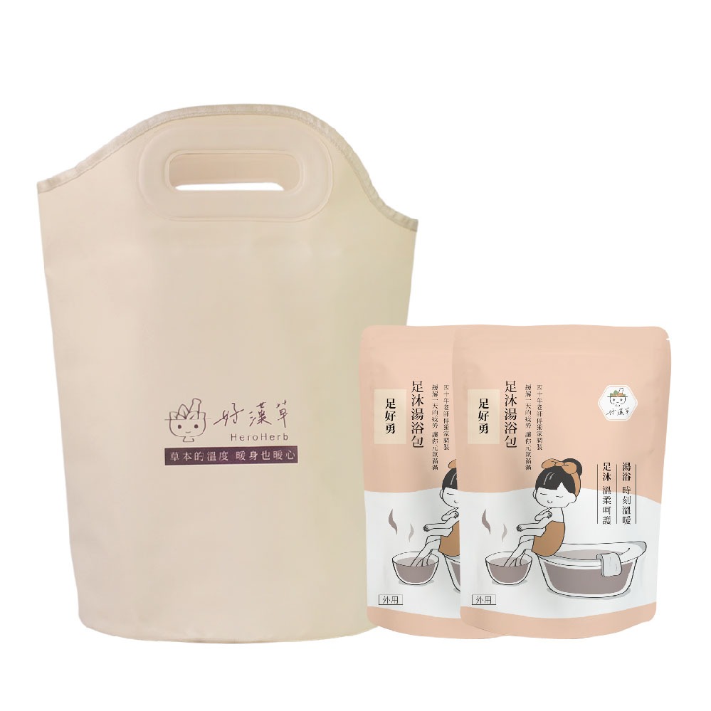 【好漢草】足浴袋湯浴禮盒 感溫足浴袋+足好勇2袋 (泡腳,足浴包,泡腳包,溫感)