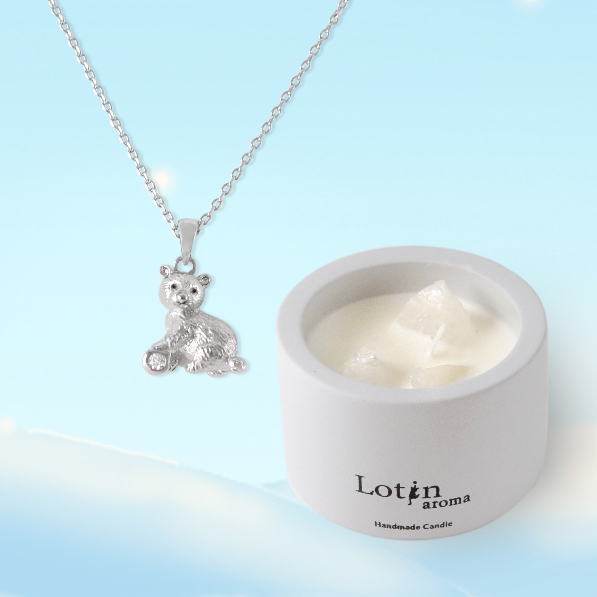 生日快樂祝福您1+1【Lotin】雪境香氛蠟燭禮盒組-尋縱 粉水晶 (飾品自選款式)