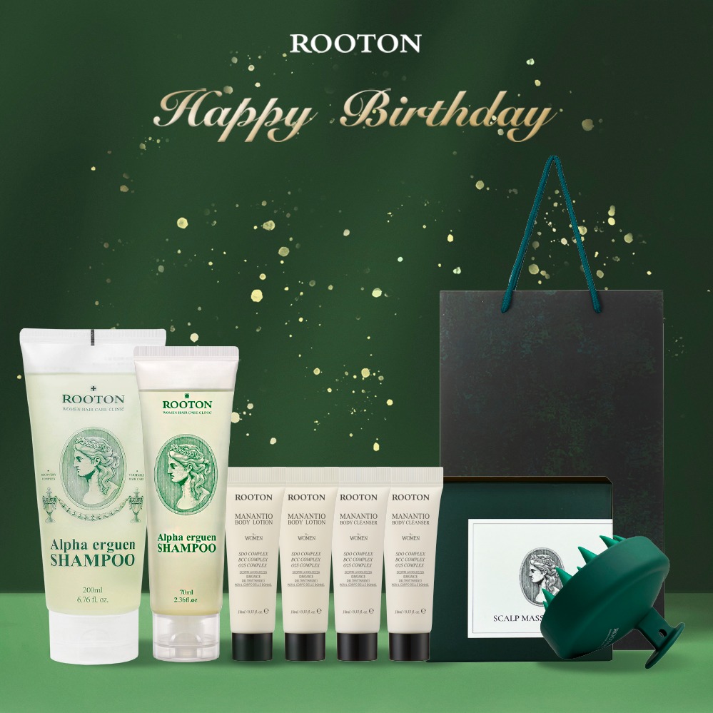 快速出貨【ROOTON】生日快樂!甦活植萃洗髮精500ml+沐浴膠5ml x2+身體乳5ml x2+海藻洗髮精10ml x2+護髮素10ml x2+頭皮按摩梳+品牌質感提袋(天蠍座生日禮物)