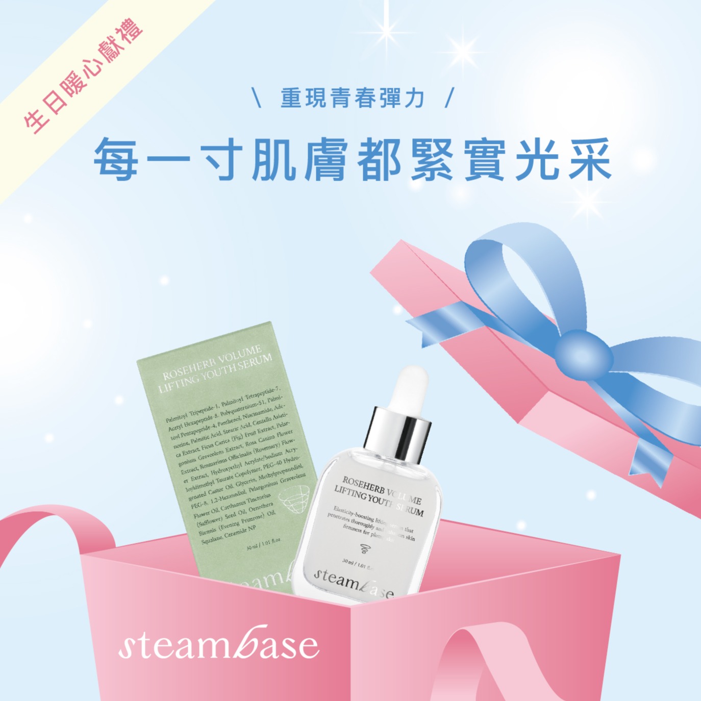 🎁節日限定❤【STEAMBASE】玫瑰系發光肌保濕組-玫瑰亮白緊緻精華液+毛孔緊緻精華液+贈眼罩體驗x2片(贈品為即期體驗品/香味隨機)