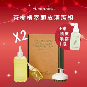 🎁節日限定❤【STEAMBASE】茶樹植萃頭皮清潔組-茶樹頭皮去角質淨化禮盒組(含刷頭)買兩組+贈茶樹頭皮養護噴霧100ml