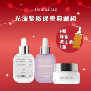 🎁節日限定❤【STEAMBASE】光澤緊緻保養典藏組-玫瑰亮白緊緻精華液+毛孔緊緻精華液+玫瑰亮白緊緻乳霜+贈麥盧卡蜂蜜光澤洗卸潔面液