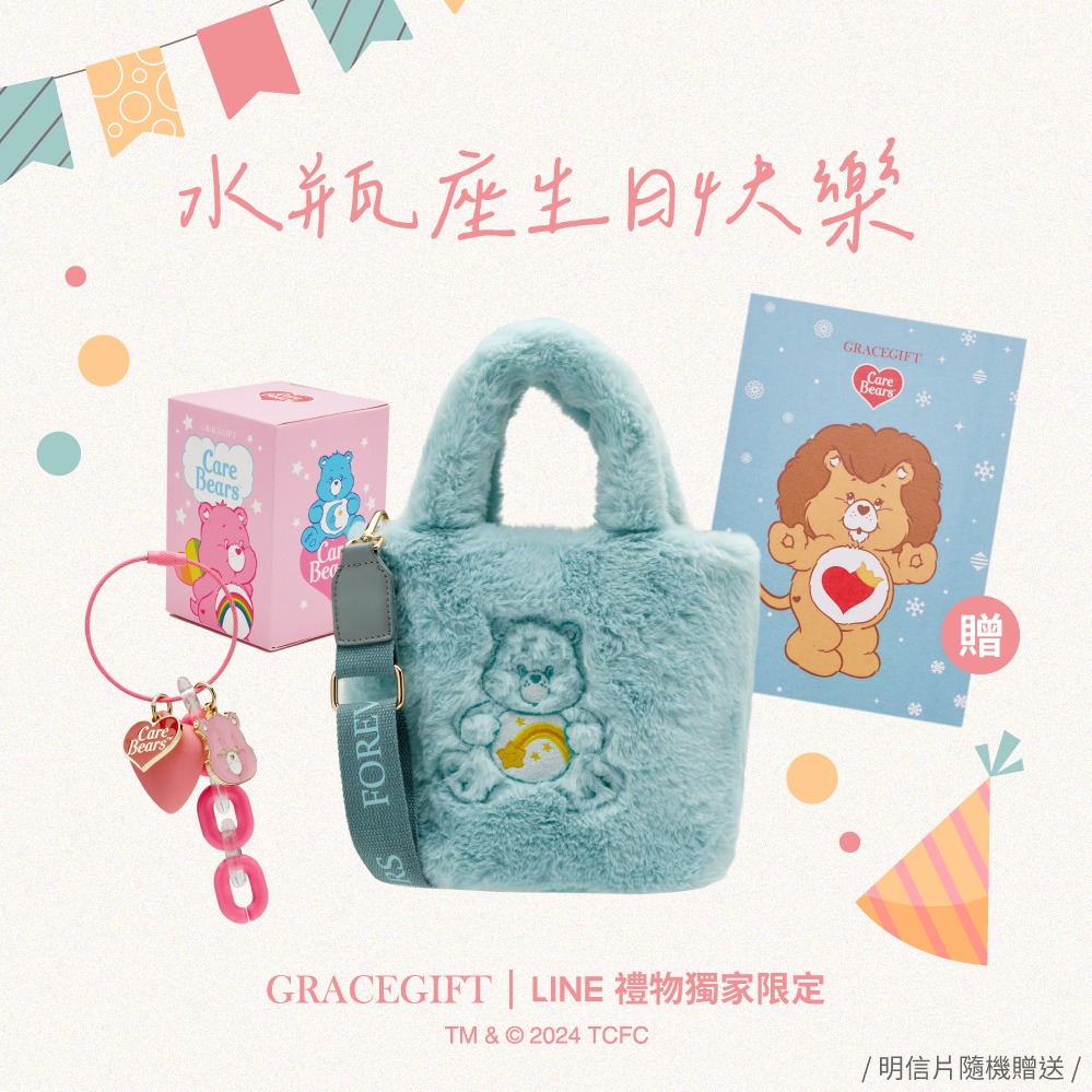 新年獨家福袋【Grace Gift】Care Bears-星辰甜夢系列毛絨玩偶吊飾鑰匙圈盲盒+貝殼光吊飾鑰匙圈盲盒+泰迪毛毛手提肩背托特包|新年禮物推薦