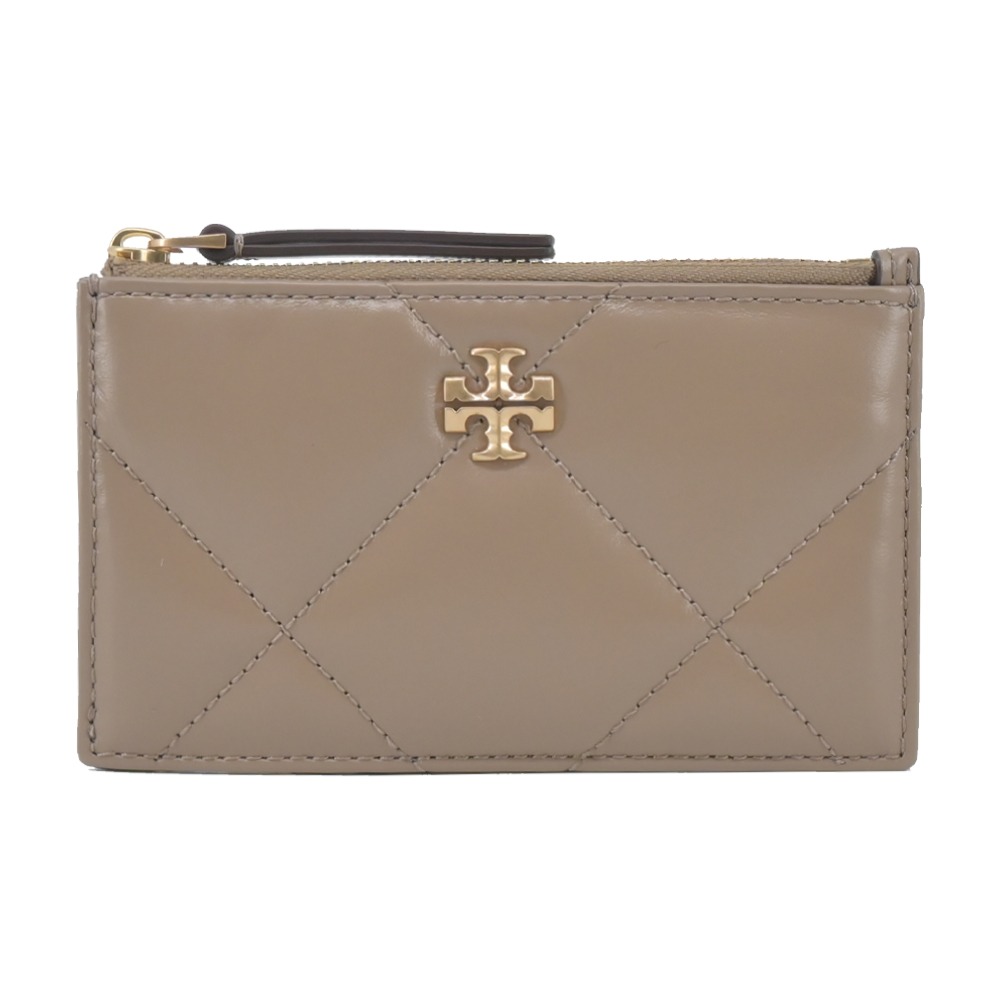 [平輸版] 【TORY BURCH】KIRA 納帕皮革菱格紋拉鍊短夾(全黑)真品平輸