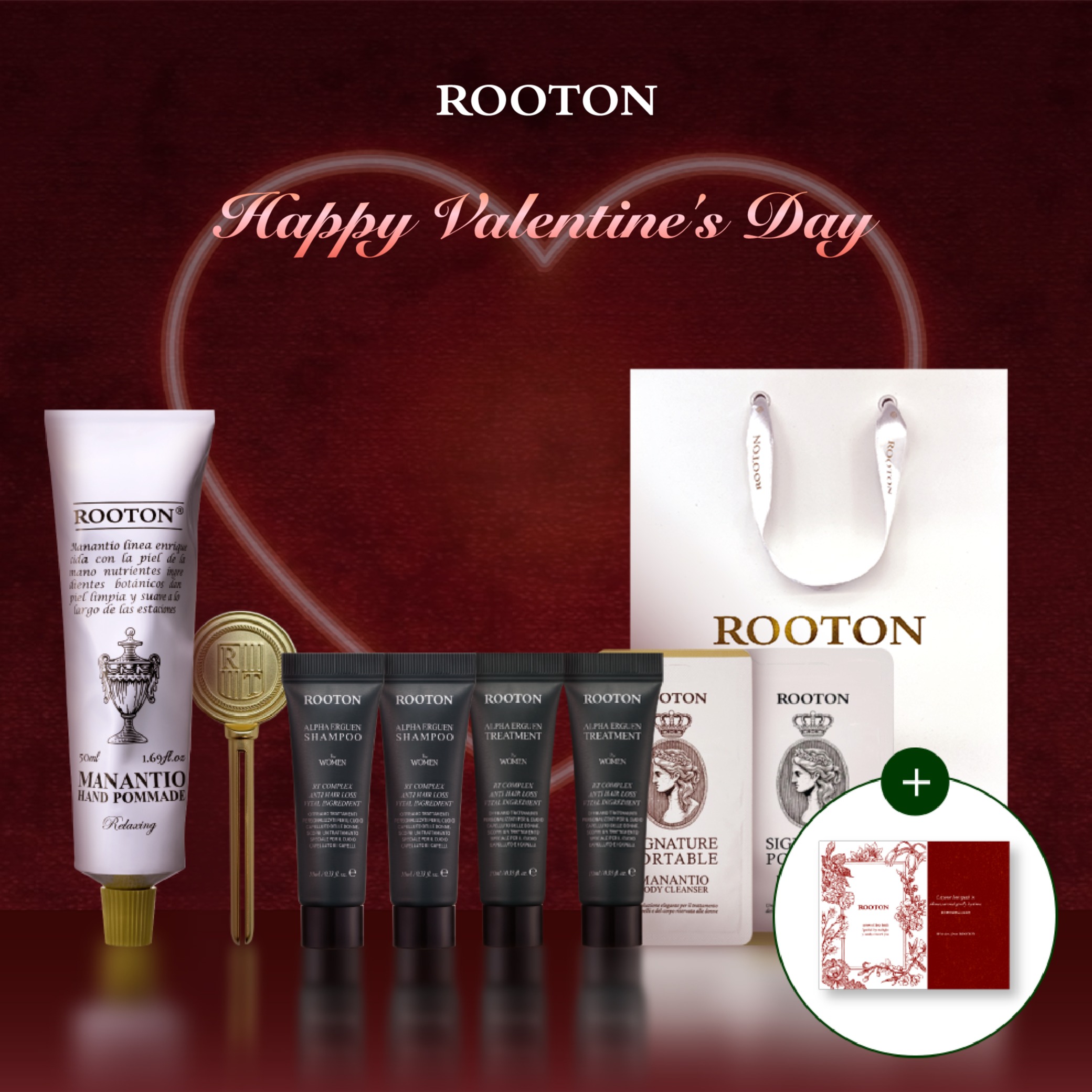 快速出貨【ROOTON】情人節快樂!甦活植萃髮根噴霧150ml+甦活植萃洗髮精70ml+甦活植萃護髮素30ml+甦活養髮梳+棉麻束口袋+燙金禮袋