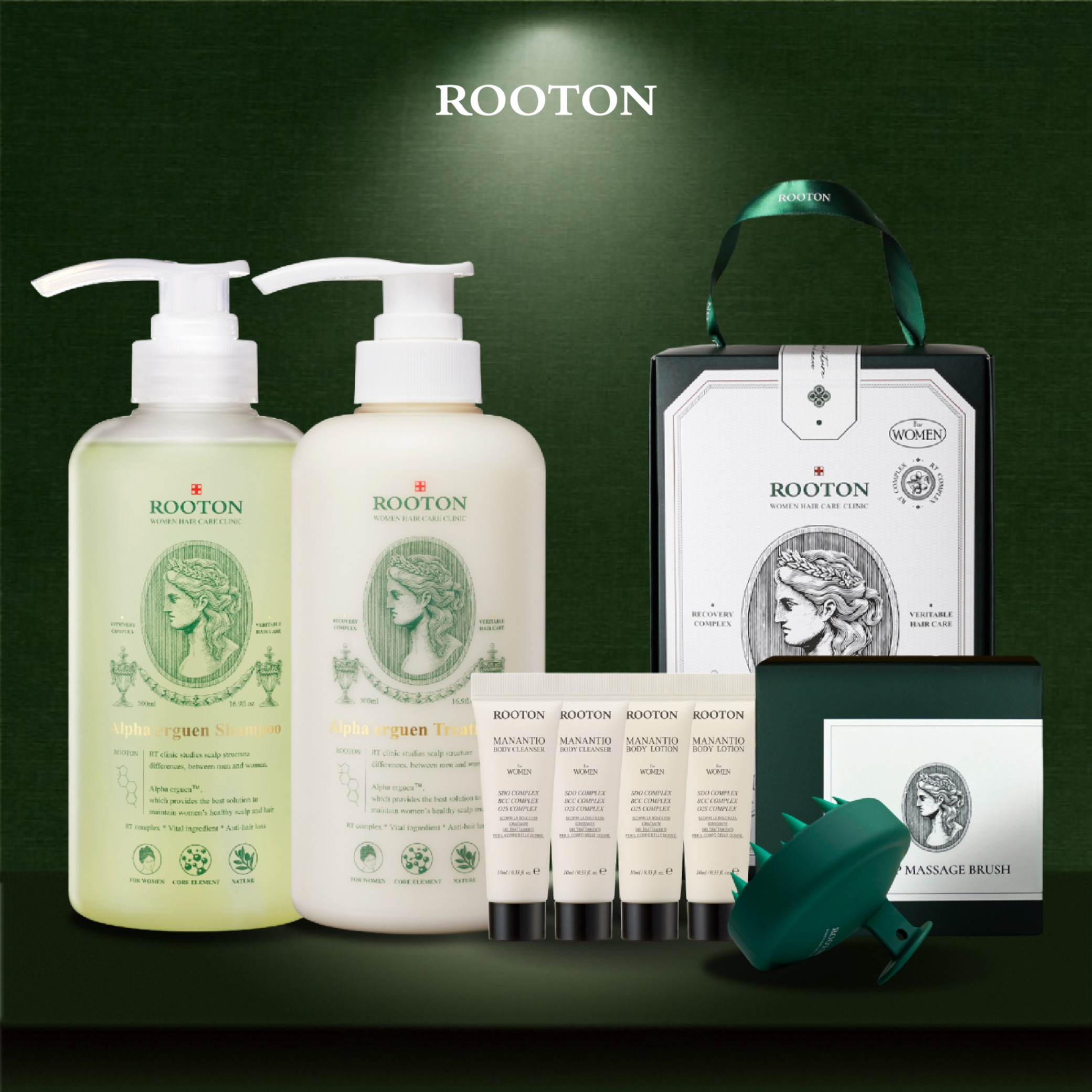 快速出貨【ROOTON】生日快樂!甦活植萃洗髮精50ml x2+奇蹟復甦精萃綠瓶13ml+頭皮按摩梳+海藻洗髮精10ml x2+護髮素10ml x2+品牌質感提袋(摩羯座生日禮物)