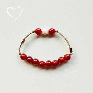 【C happy】微笑淡水珍珠石榴石手鍊_開運好氣色_生日禮物__新年禮物_情人節禮物