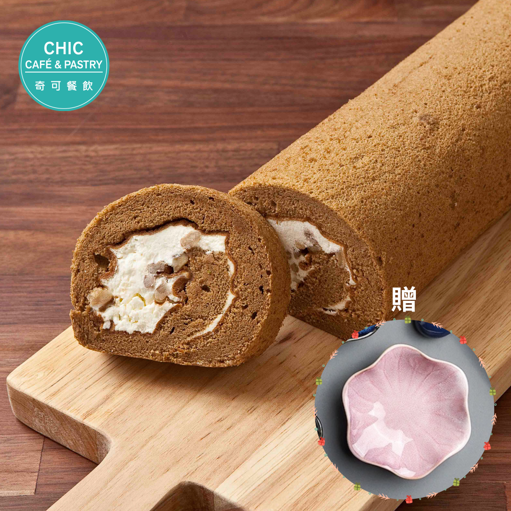 【Chic Pastry】沖繩黑糖QQ生乳捲+陶瓷點心盤 | 100%純生乳 | 無人工奶油香精|1+1|生日快樂|下午茶甜點|小孩點心