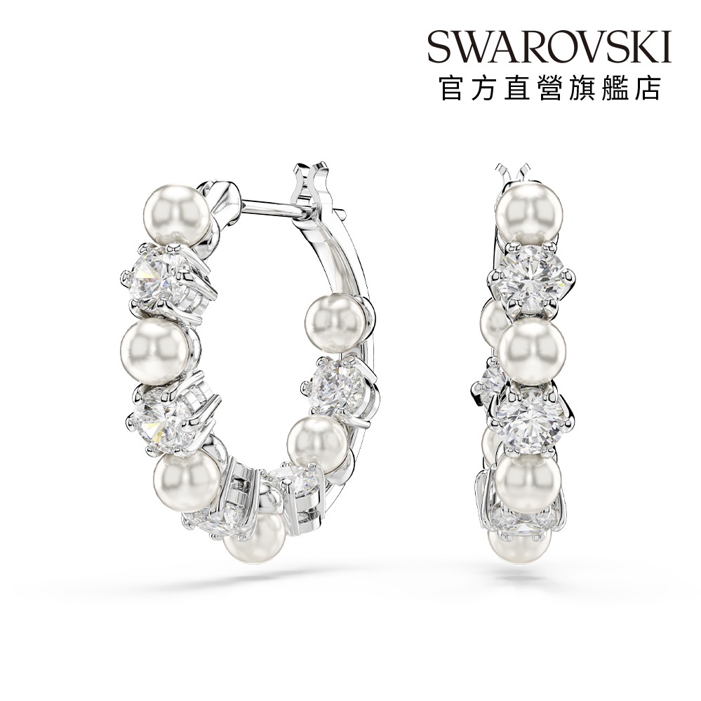 【SWAROVSKI 施華洛世奇】Idyllia 箭頭大圈耳環 混合式切割 白色 鍍白金色 | 生日禮物 | 畢業禮物 | 情人節禮物
