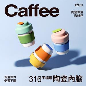 【CHAKO LAB】不鏽鋼陶瓷保溫咖啡杯 420ml 保冷保溫 矽膠卡扣 易清洗 大口徑