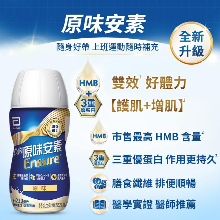 【亞培】 安素香草減甜即飲 HMB升級配方(220ml) x24入