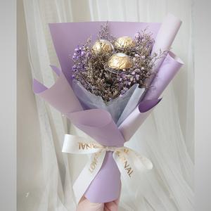 【KIRA與花花藝】I LOVE YOU金莎花束/三顆/粉紫/乾燥花花束/情人節花束/畢業花束/生日禮物/情人節禮物
