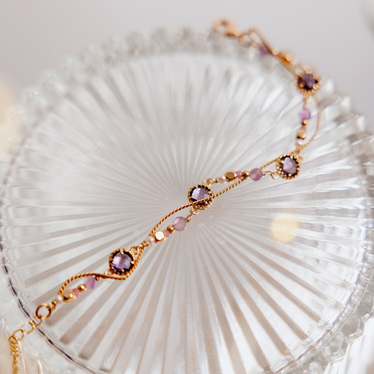 【Ficelle輕珠寶】南島花開的記憶| 紫水晶 草莓晶 白水晶 蛋白石 淡水珍珠 黃銅鍍18K金 彈性繩手鍊