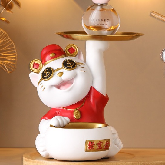 🐎新年快樂🔜 快速出貨【招財貓的家】8寸紅果舉托盤招財貓 生日禮物 開業禮物 開運 招財 喬遷禮物 交換禮物