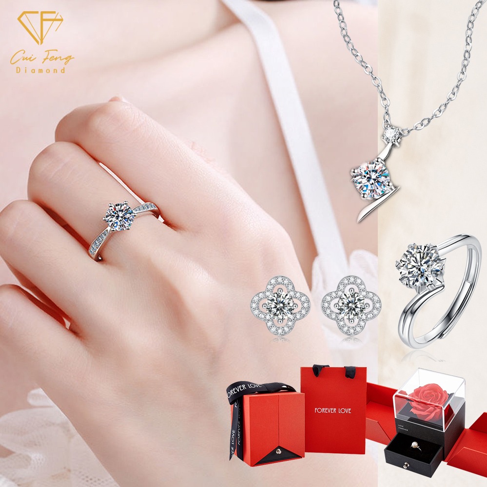 [快速出貨]【CF鑽飾】520限定《🌺花款 項鍊+戒指》莫桑鑽 1+1套組 情人節 贈玫瑰花禮盒 生日禮物 送禮