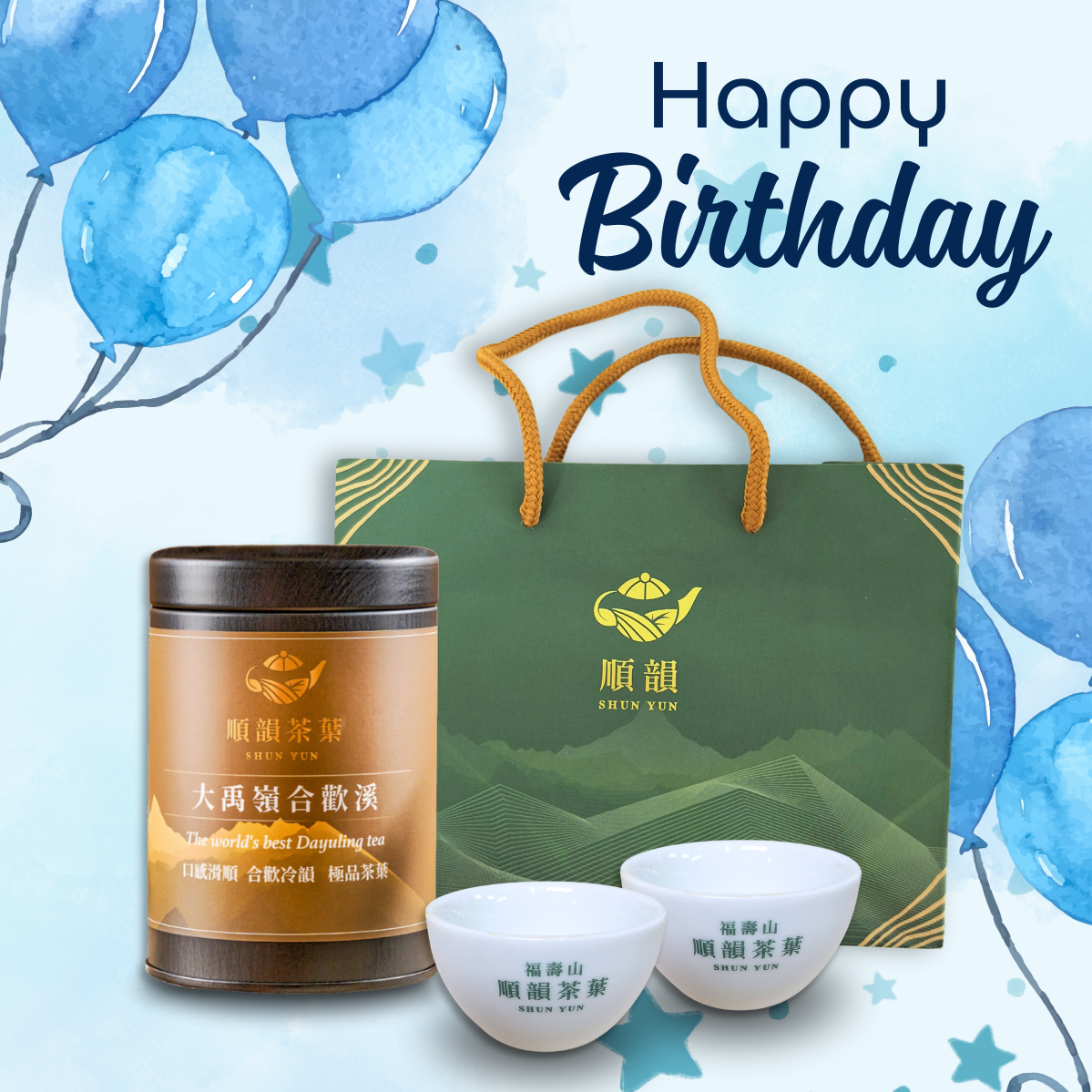 🎂生日祝福【順韻茶葉】[LINE禮物獨家][收禮者自選][1+1組合][快速出貨]壽與天齊組 - 華崗頂峰|福壽天府流籠頭|產製銷一條龍|安心茶葉|正統台灣高冷茶