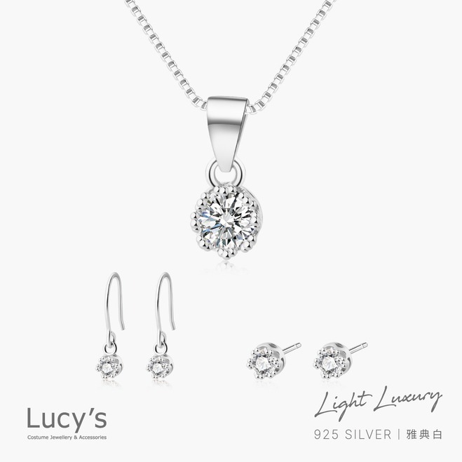 【Lucy's】都會輕奢系列|925純銀 雅典白(方形) 耳環/項鍊 (114804/117213/112304)