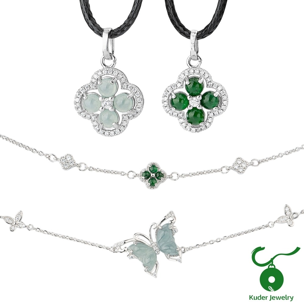[快速出貨]【Kuder Jewelry】緬甸產天然A貨冰糯種翡翠觀音組附永恆玫瑰禮盒,贈鑑定書