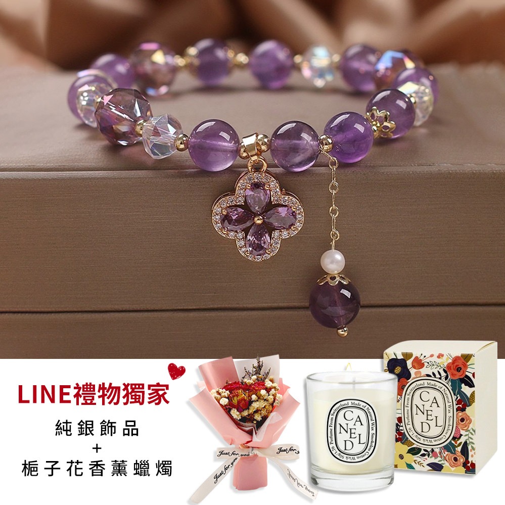 🧡免費刻字『LINE禮物獨家』【OCTOBER 16Th】天然紫羅蘭水晶玫瑰花水晶手鍊 開運 生日禮物 閨蜜禮物 情人節禮物 客製化禮物 JUL08