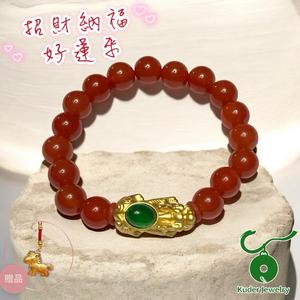 [快速出貨]【Kuder Jewelry】中性款男女適用-招財納福好運來-銀鍍金貔貅紅玉髓手鍊附珠寶鑑定書 送馬上有錢吊飾一件
