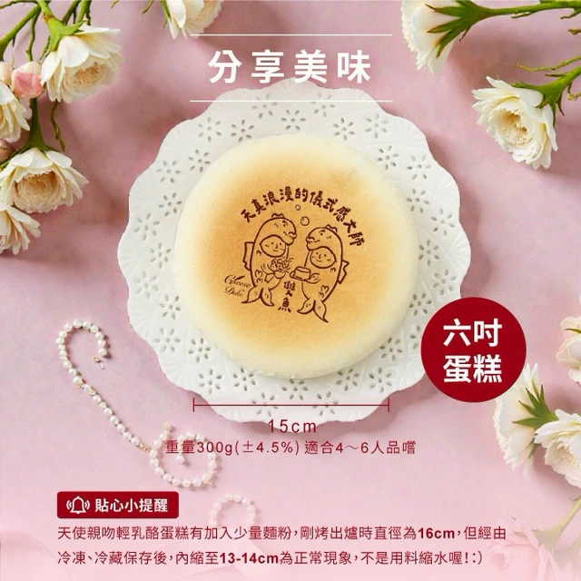 3日內出貨|加碼贈小小公爵【起士公爵】〔永遠18歲〕天使親吻輕乳酪蛋糕(6吋)(圓形蛋糕、祝福蛋糕)