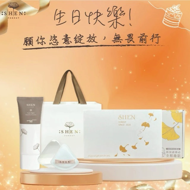 [快速出貨]【森SHEN】生日快樂🎂金盞花舒緩調理潤膚水 125ml+裸光潤色防曬乳30g +植潤修護唇油+愛心隨身化妝鏡+粉撲 (享禮盒包裝+品牌紙袋)