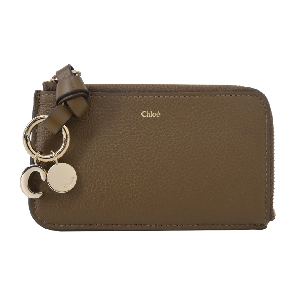 [平輸版] 【COACH】金屬珠光古銅色C Logo PVC 拼接防刮皮前卡夾鑰匙零錢包 真品平輸