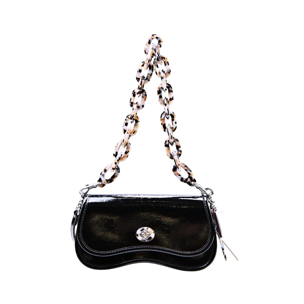 [平輸版] 【COACH】黑檀木C LOGO PVC拼接荔枝紋皮革斜背水桶包 真品平輸