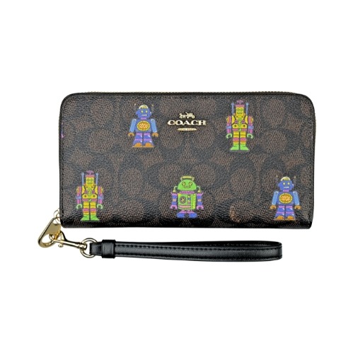 [平輸版] 【COACH】 胡桃木/黑C LOGO壓PVC手掛拉鍊長夾 真品平輸