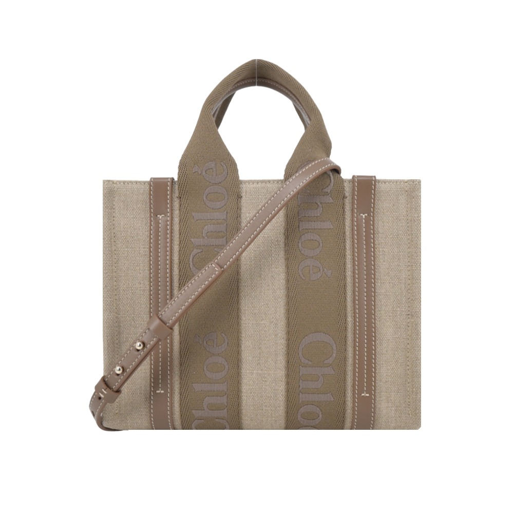 [平輸版]Chloe Woody tote bag 新款帆布兩用托特包(小號/灰褐色)真品平輸