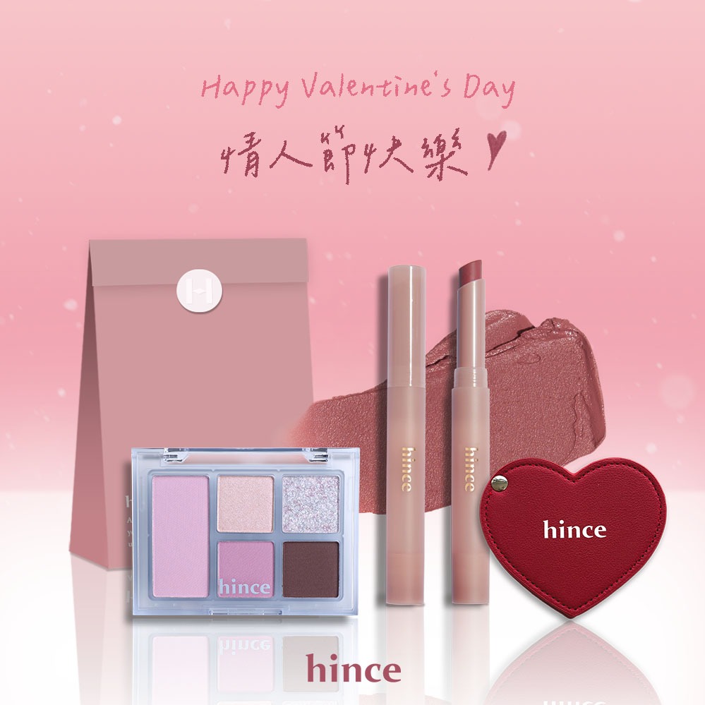 快速出貨【hince】生日快樂!冰透唇釉+柔光煥彩單色眼影+粉色皮革化妝包+粉雪冬語禮盒+獨家貝殼小卡(Thank You)(生日禮物/女生送禮/獨家組合)