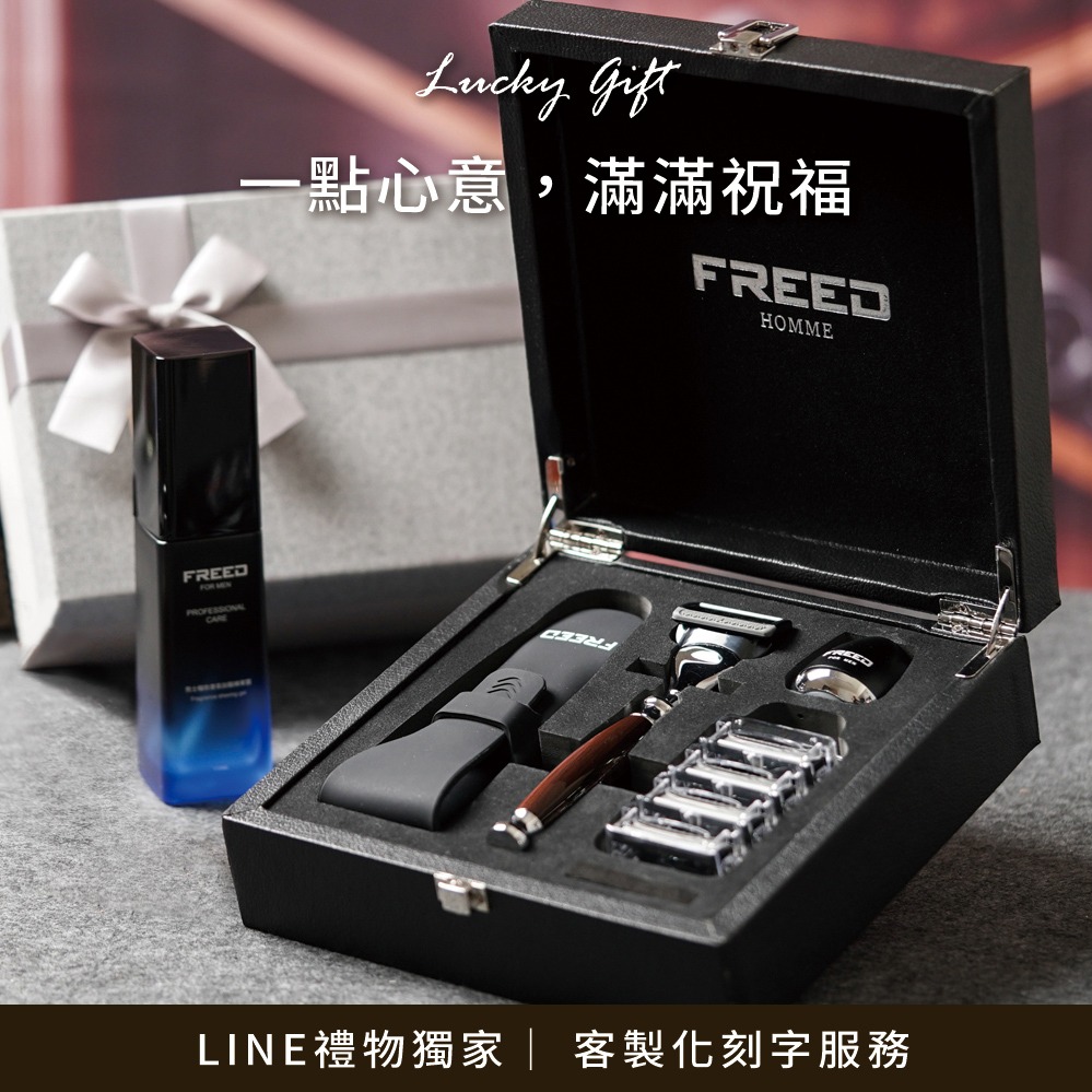[快速出貨]【FREED】雙刃式刮鬍刀天行者禮盒五件組-哈德斯 客製化刻字 生日禮物 送禮推薦 男生禮物 水瓶座 雙魚座 禮物獨家 新品上市 情人節禮物
