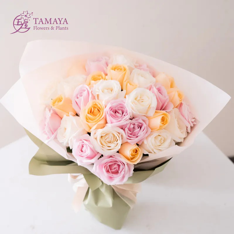 轉角遇到愛【玉屋 TAMAYA】淡雪恋玫瑰花束|50朵 代印卡片 情人專屬花束 情人節快樂 情人節花禮 情人獻禮 傳遞情意 永恆的愛 幸福浪漫 520