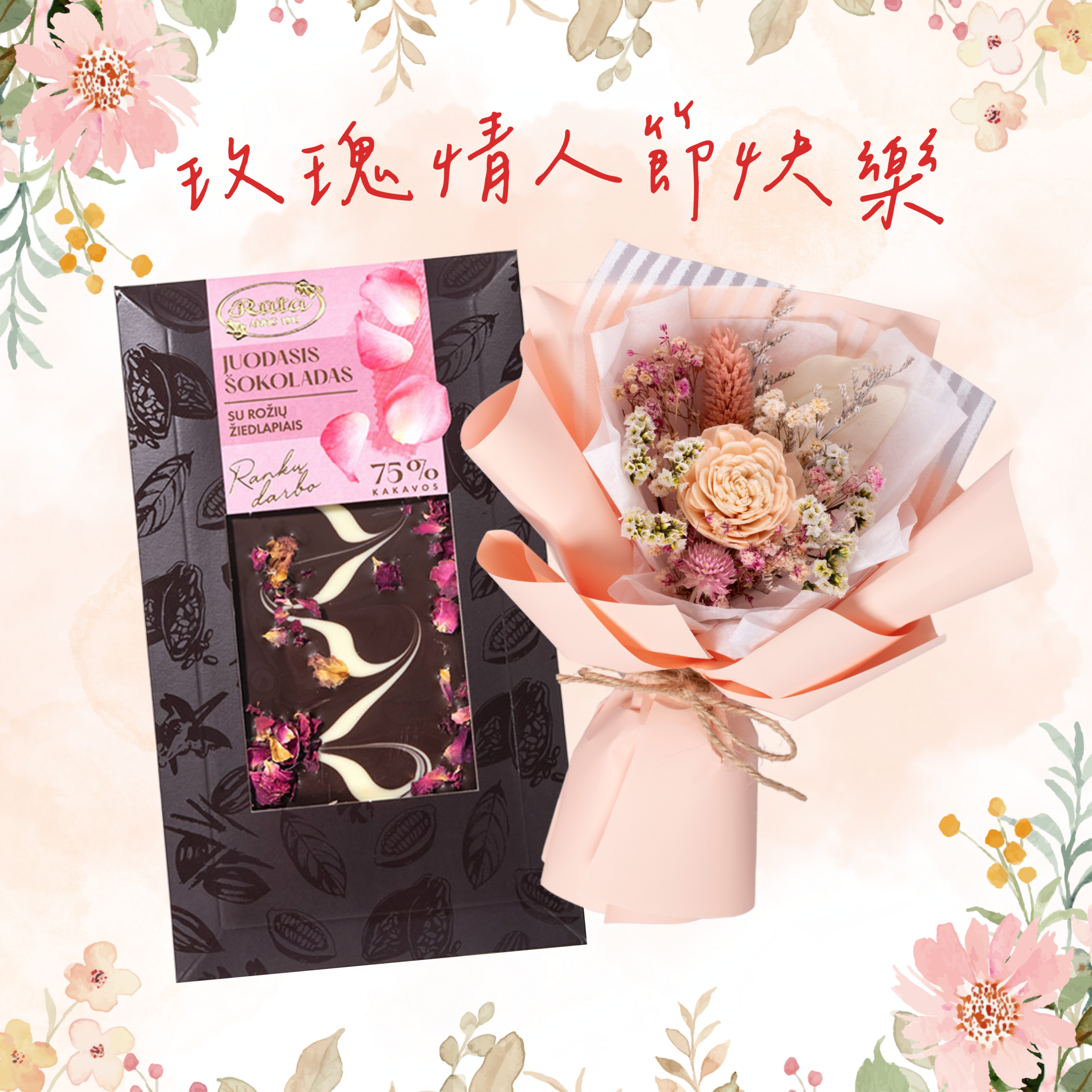 七夕限定❤️🎁情人節快樂!【立陶宛 Ruta露特巧克力】 (經典夾心巧克力禮盒+乾燥花束)