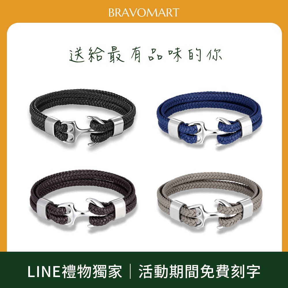 [快速出貨]【BRAVOMART】金色船錨鉤尼龍編織手環 情侶手鍊 皮手鍊 客製化刻字 生日禮物 送禮推薦 男生禮物 現貨 摩羯座 水瓶座 禮物獨家 新品上市 情人節禮物