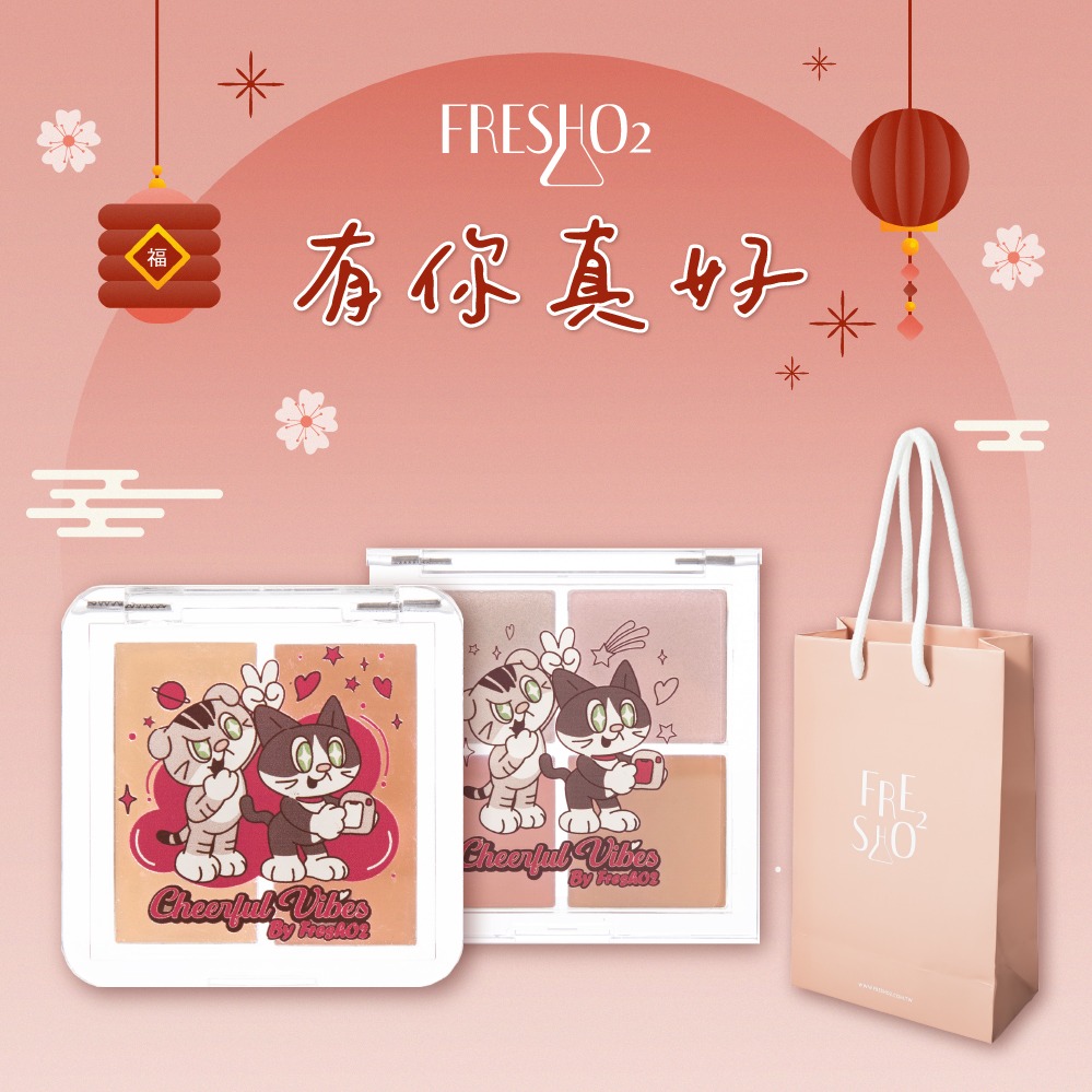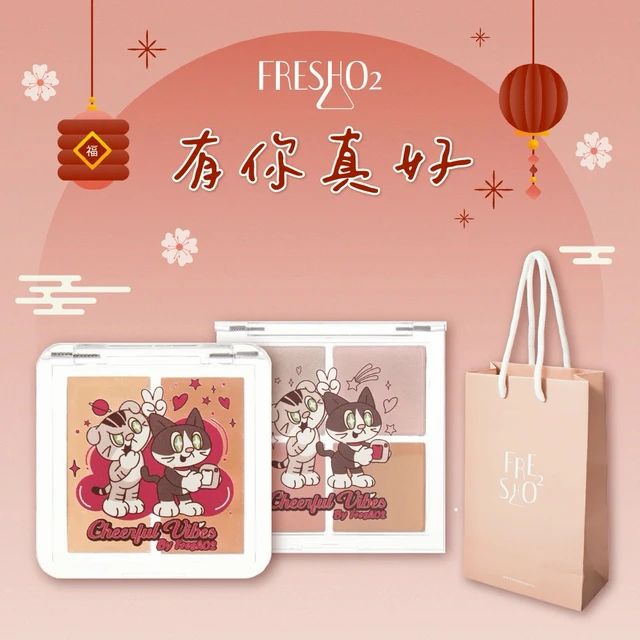 [快速出貨]【FreshO2】永恆星光六胜肽豐潤水感唇釉+無瑕柔光美肌雙色遮瑕盤 插畫家小貓x薛妞妞聯名|生日禮物 送禮 新年彩妝福袋 情人節 畢業禮 聖誕 耶誕 紀念日 喬遷 交換禮物