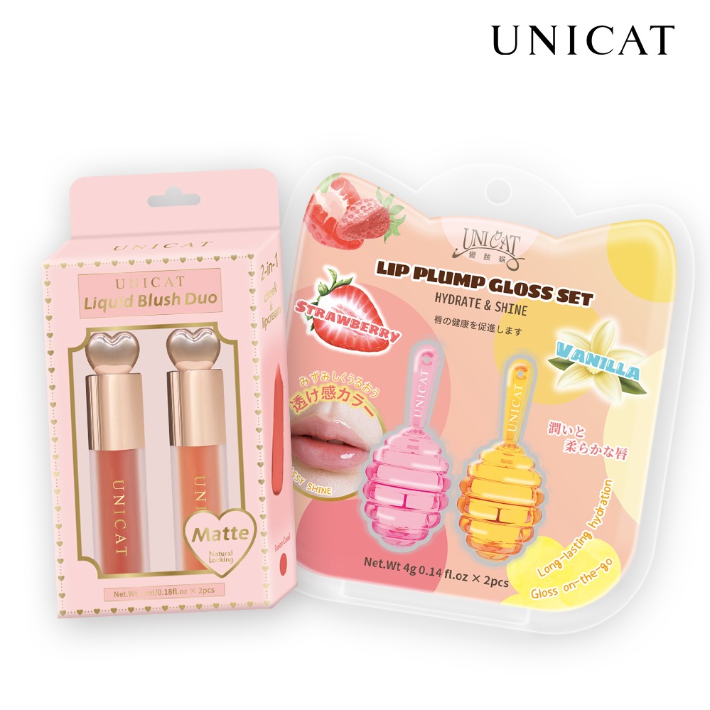 【UNICAT 變臉貓】人氣禮物|水光透潤玻璃唇油(蜜桃)+粉嫩簡約串珠手鍊禮盒 Y2K手機掛繩 吊飾 護唇 唇蜜